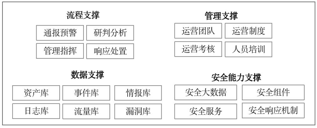 安全数据集中:安全分析是安全运营技术架构的核心,在安全工具整合的基础上,搭建关基的资产库、事件库、日志库、流量库、漏洞库、情报库等,基于安全大数据安全分析,确保潜在风险的挖掘发现,提高整体态势分析准确性和关基防护水平。