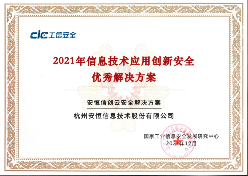 信创云安全解决方案斩获国家工信安全中心“2021年信息技术应用创新安全优秀解决方案”的殊荣。