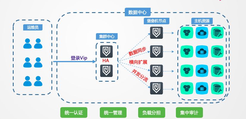 支持集群化部署,满足超大运维量下的并发需求,实现统一管理,统一授权,统一审计的需求。