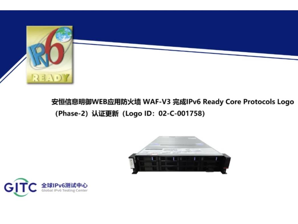 国际认证!安恒信息七大产品完成IPv6 Ready Logo认证更新